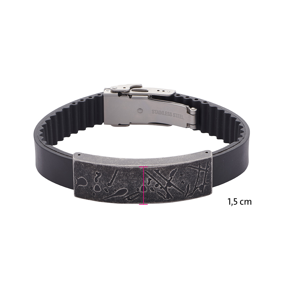 Tento ležérny náramok presvedčí krásnym kontrastom vytvoreným čiernym lesklým studeným smaltom a matným stredovým prvkom v použitom vzhľade. Zdá sa, že vzor bol náhodne prehodený cez šperky, aby celkovo pôsobil dynamickým a športovým dojmom.