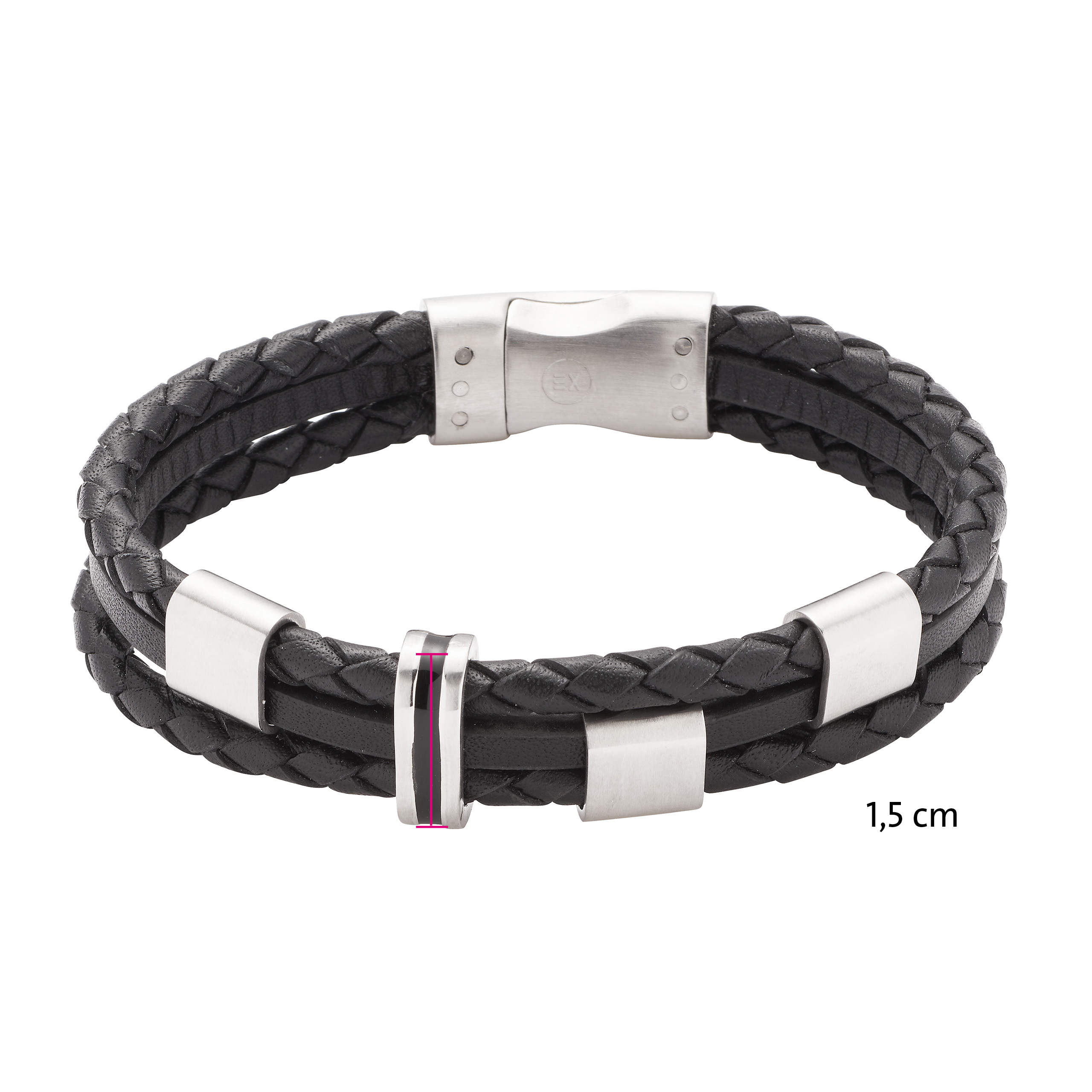 Tento nápadný pánsky náramok prichádza v dizajne viacerých radov. Je vyrobený z pletenej kože, ktorá je kombinovaná s matnými prvkami z chirurgickej ocele. V dôsledku toho vytvára ležérny a moderný vzhľad, ktorý je vhodný do kancelárie aj na voľný čas.
