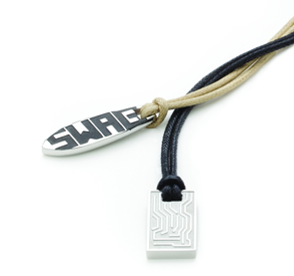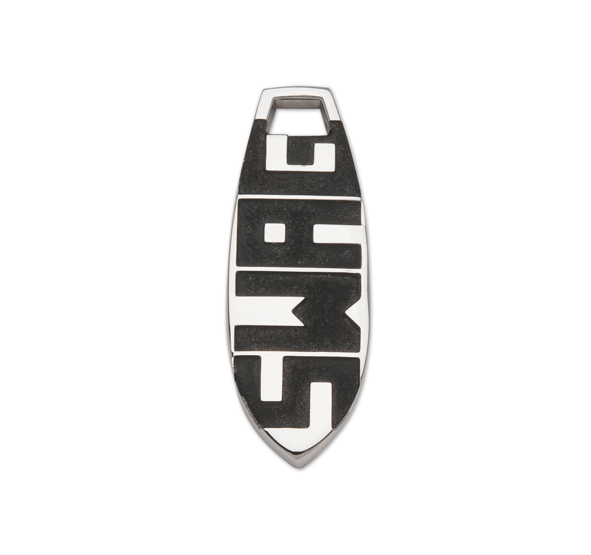 Pánsky prívesok podlhovastého tvaru s nápisom, ktorý je veľmi trendy.