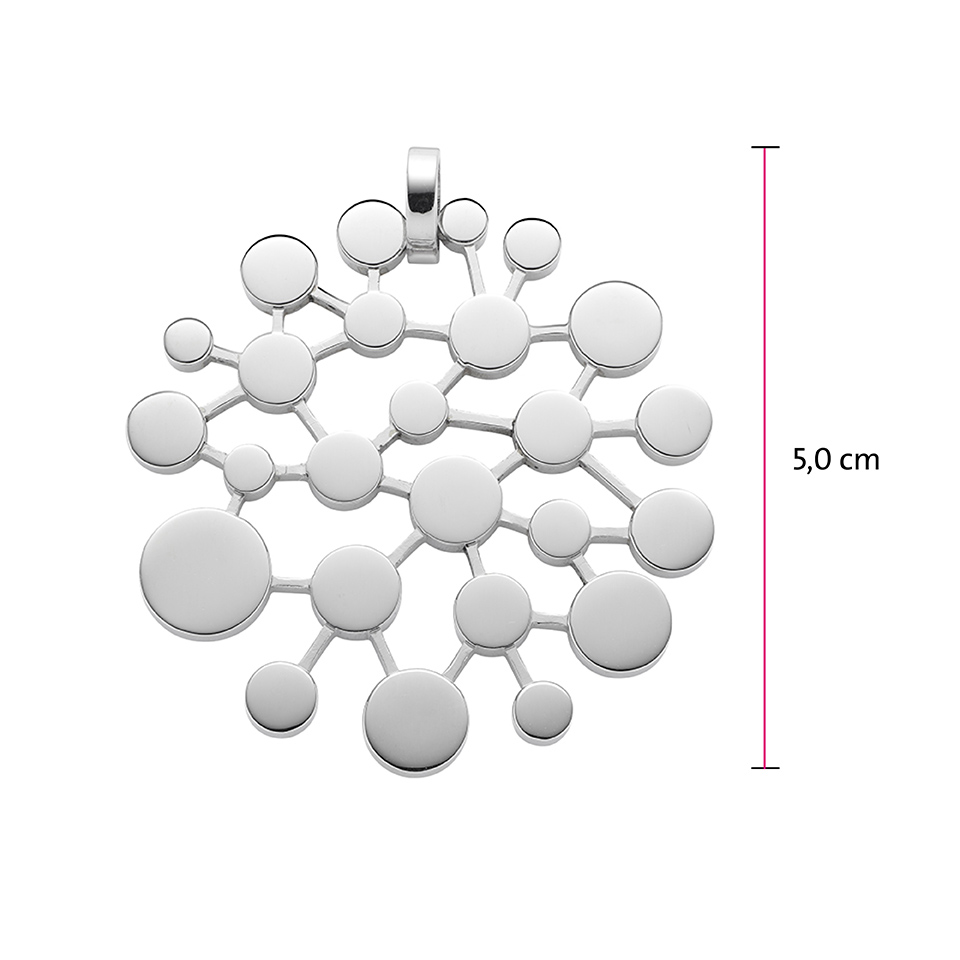 Tento šperk je to pravé pre fanúšikov veľkých príveskov s neobvyklým dizajnom. Tvar prívesku bol vytvorený pomocou rôzne veľkých a vzájomne prepojených kruhov. Leštená povrchová úprava tiež robí tento šperk mimoriadne sofistikovaným, ale v žiadnom prípade nie rušivým. Prívesok je dodávaný so silným magnetom, ktorý je silný 1800Gs.