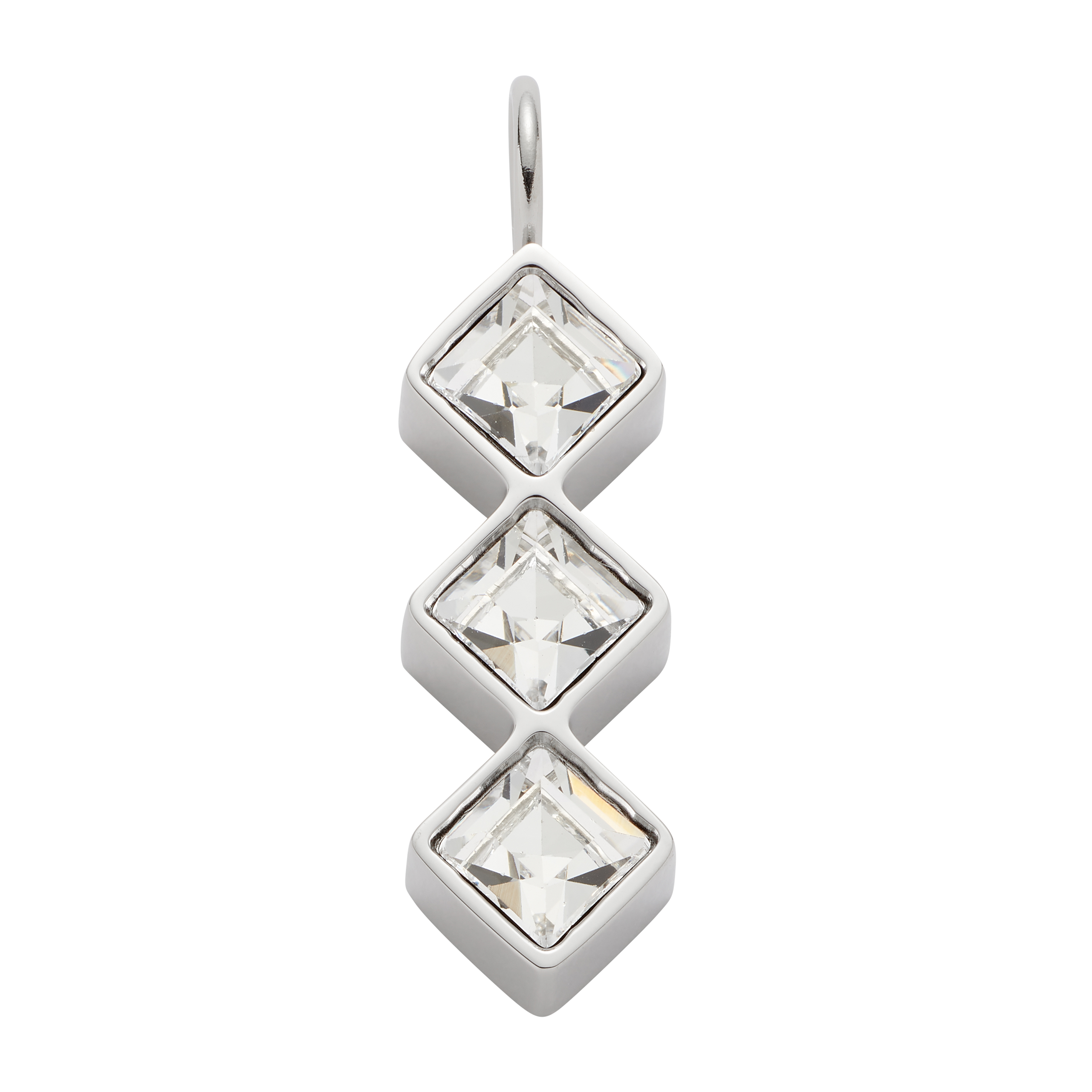 Tento o nápadný prívesok obsahuje tri štvorcové kryštály, ktoré boli vsadené do lešteného povrchu z chirurguckej ocele. Hodí sa k jednoduchým náhrdelníkom, ale dá sa skvele skombinovať aj s modernými textilnými.