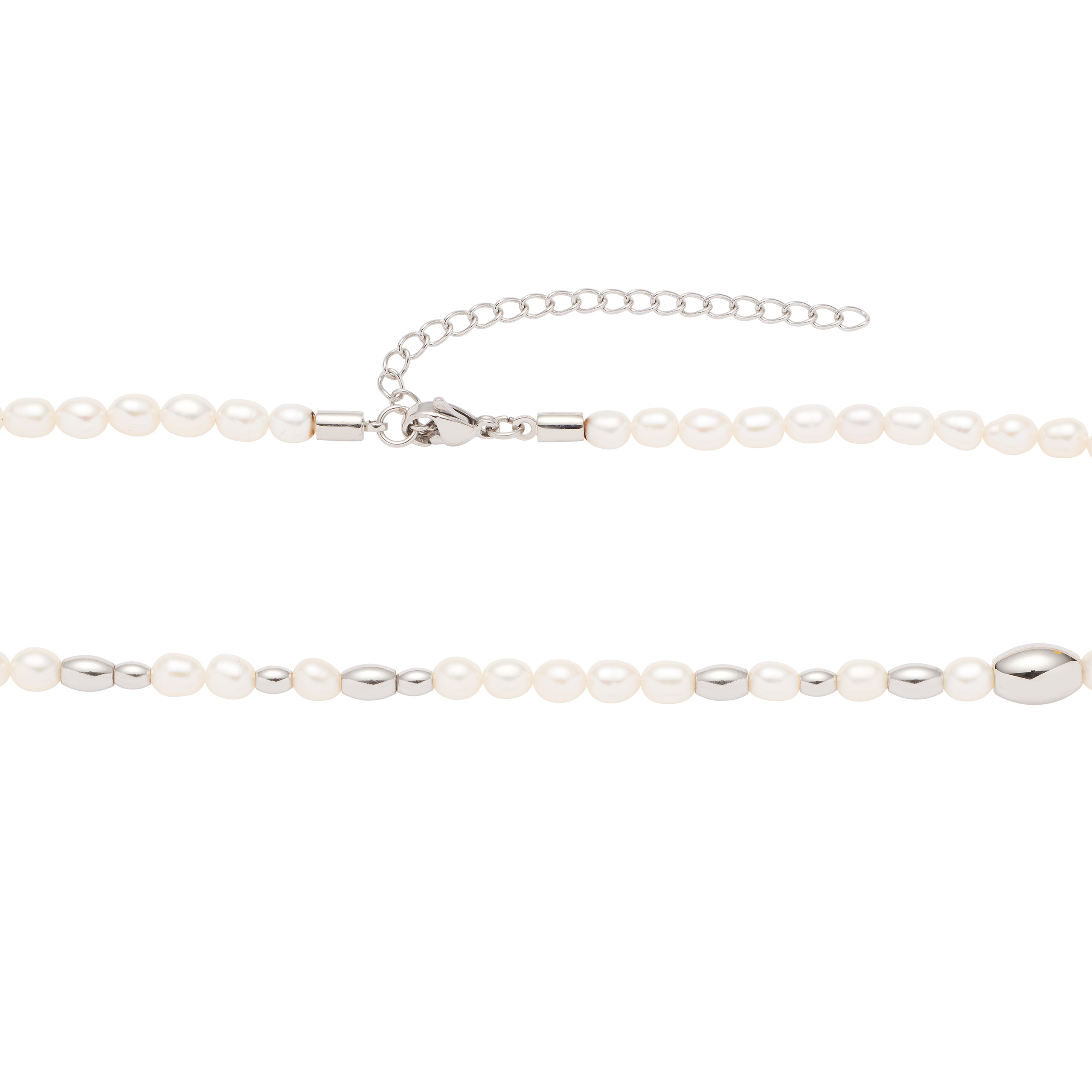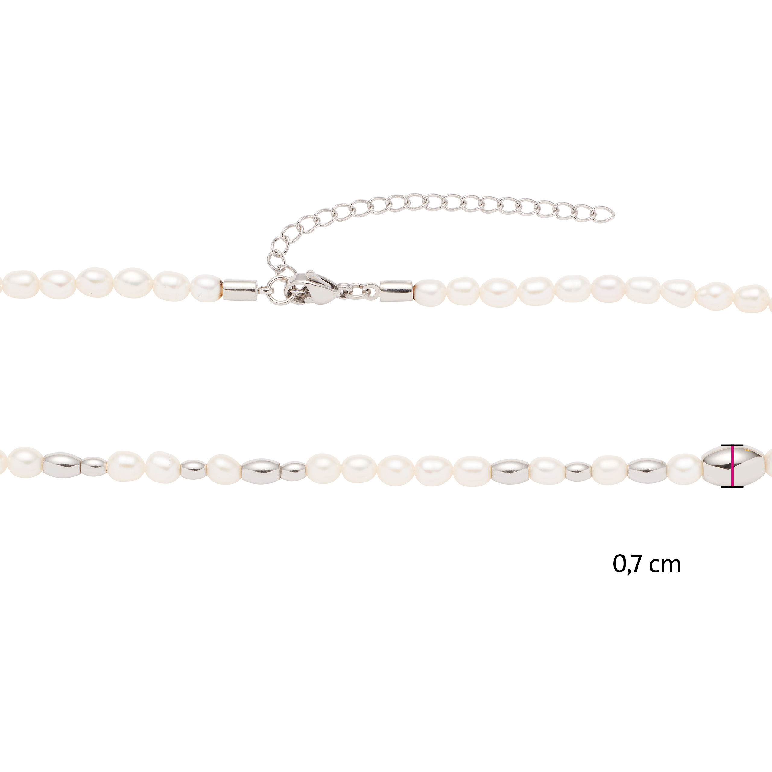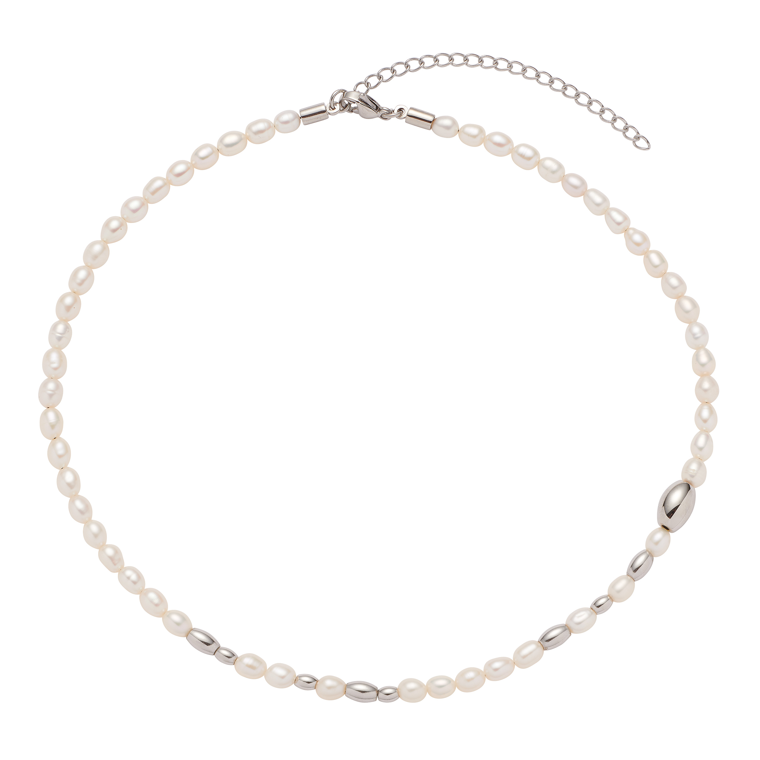 Tento náhrdelník, ktorý je dodávaný so silou magnetov, má nastaviteľnú veľkosť, a preto sa dá prispôsobiť vašim individuálnym zvykom pri nosení. Bol realizovaný oválnymi sladkovodnými perlami, ktoré boli kombinované s lesklými prvkami z chirurgickej ocele. Kombinácia vytvára nezvyčajný a zároveň veľmi moderný vzhľad, ktorý zaisťuje, že nositeľky tohto šperku upútajú všetky pohľady, kamkoľvek prídu.